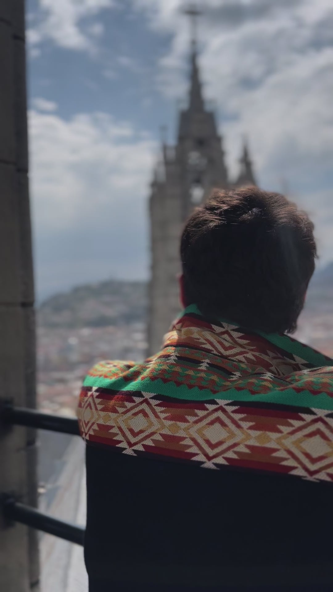 Un diseño único que captura la vibrante esencia de la selva amazónica ecuatoriana. Esta chaqueta premium y sostenible combina denim negro con tela andina tejida a mano, inspirada en la exuberante jungla verde y los atardeceres fluorescentes sobre los ríos del Oriente.