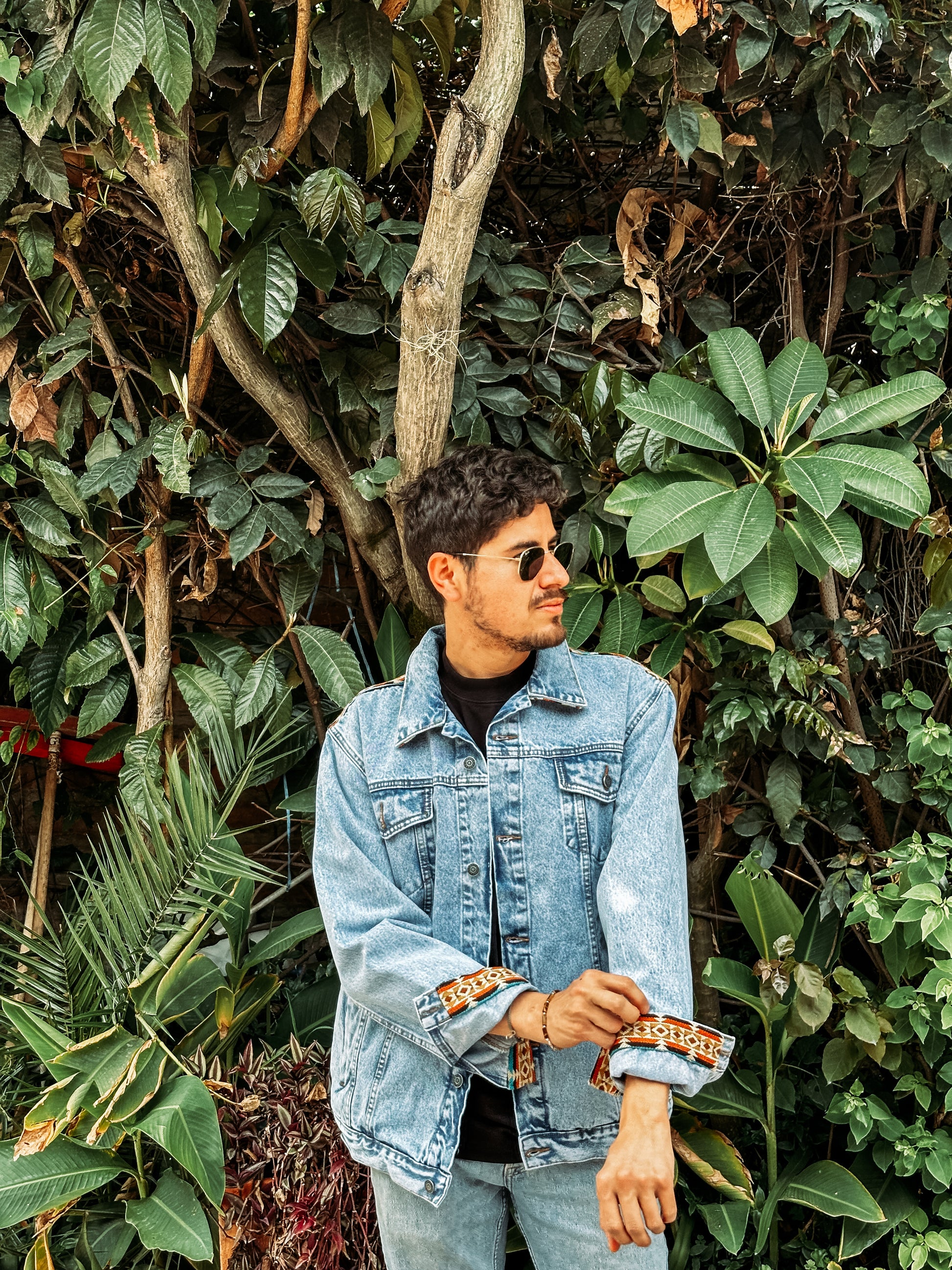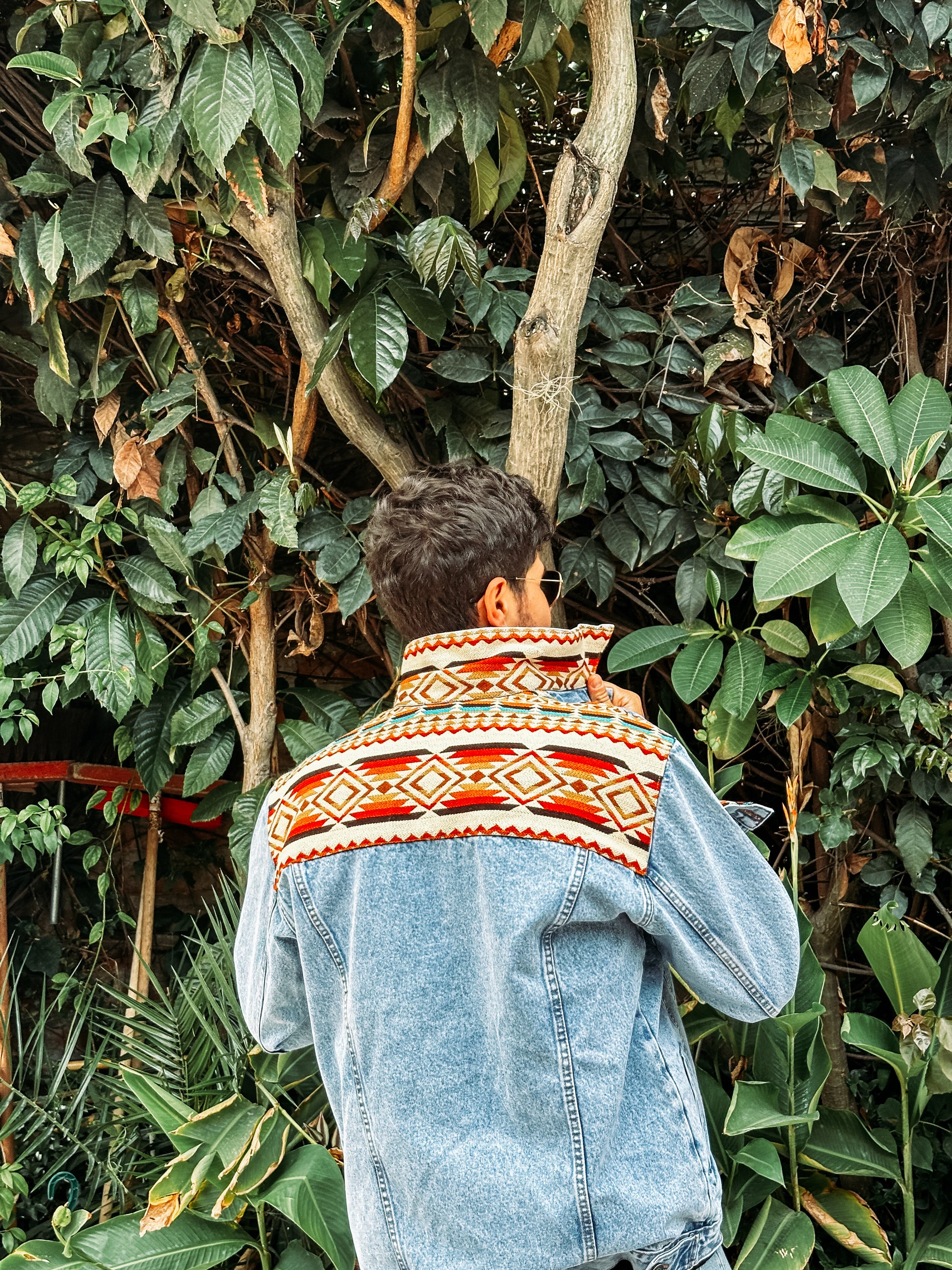 Chaqueta Unisex Apuk de Denim Azul fusionada con Tela Andina