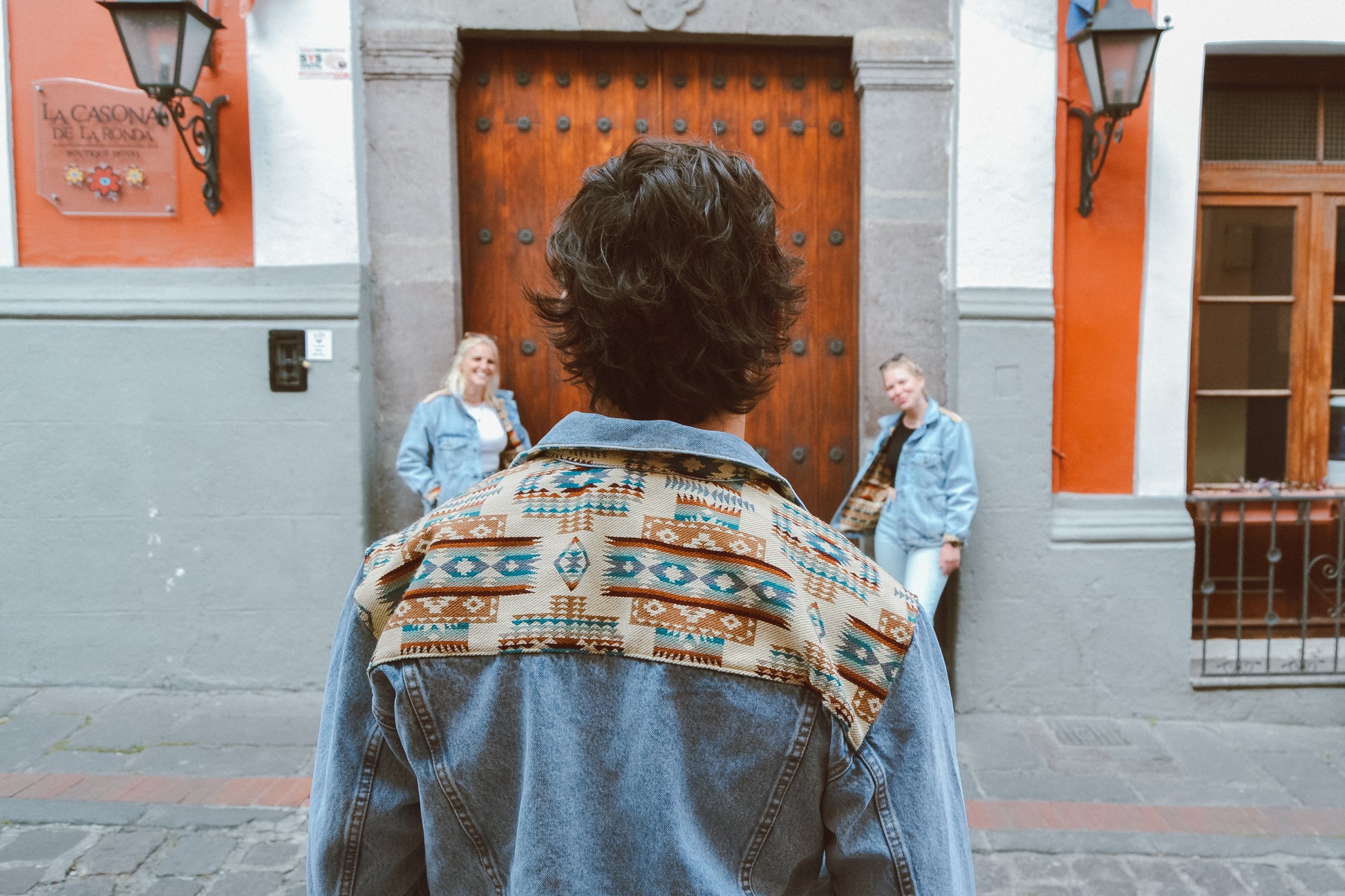 Chaqueta Unisex Apuk de Denim Negro fusionada con tela andina de Palmira