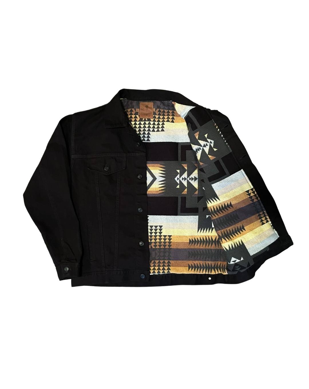 Un Best Seller. La Chaqueta Unisex Apuk Black Denim con Tela Andina Resplandor
