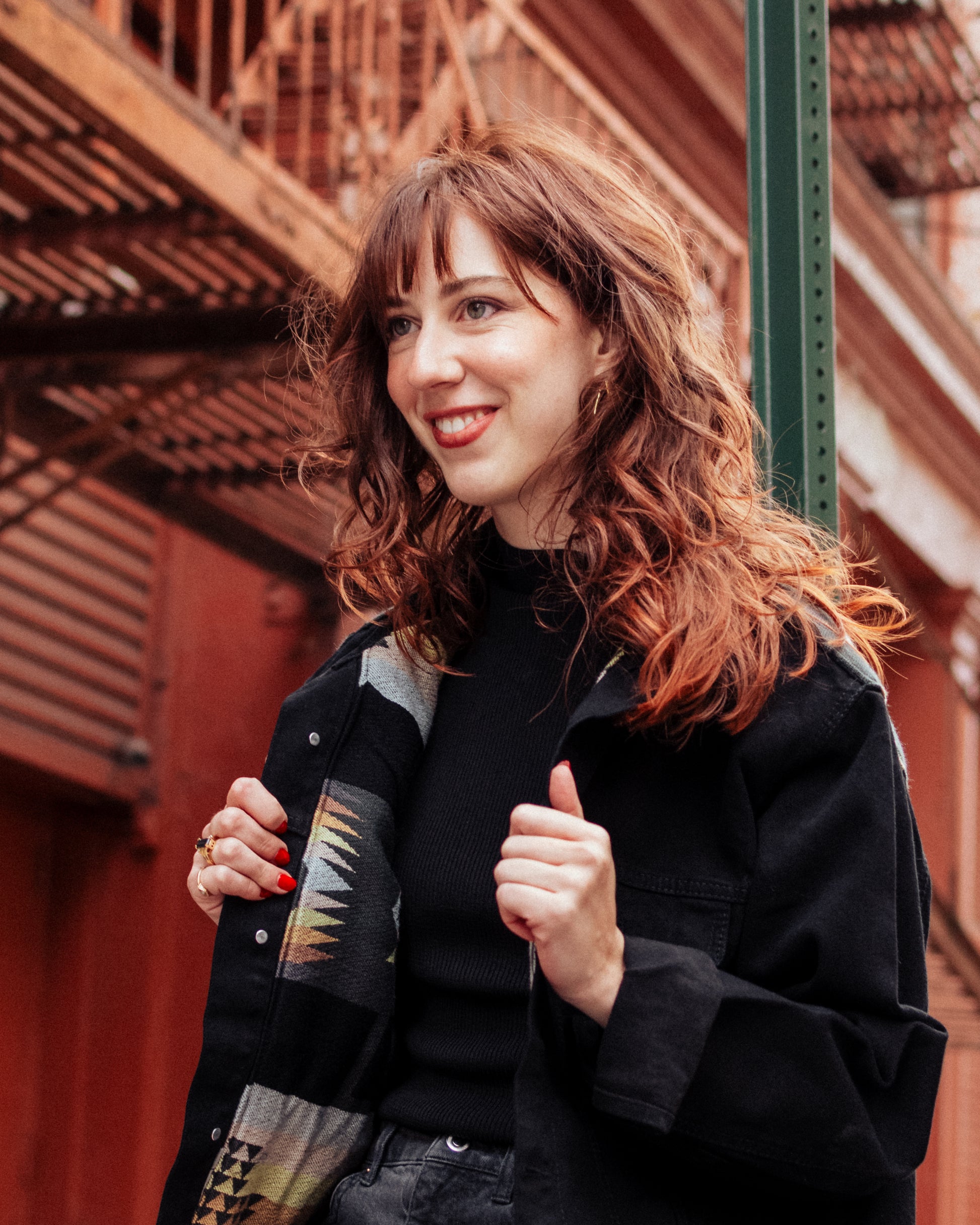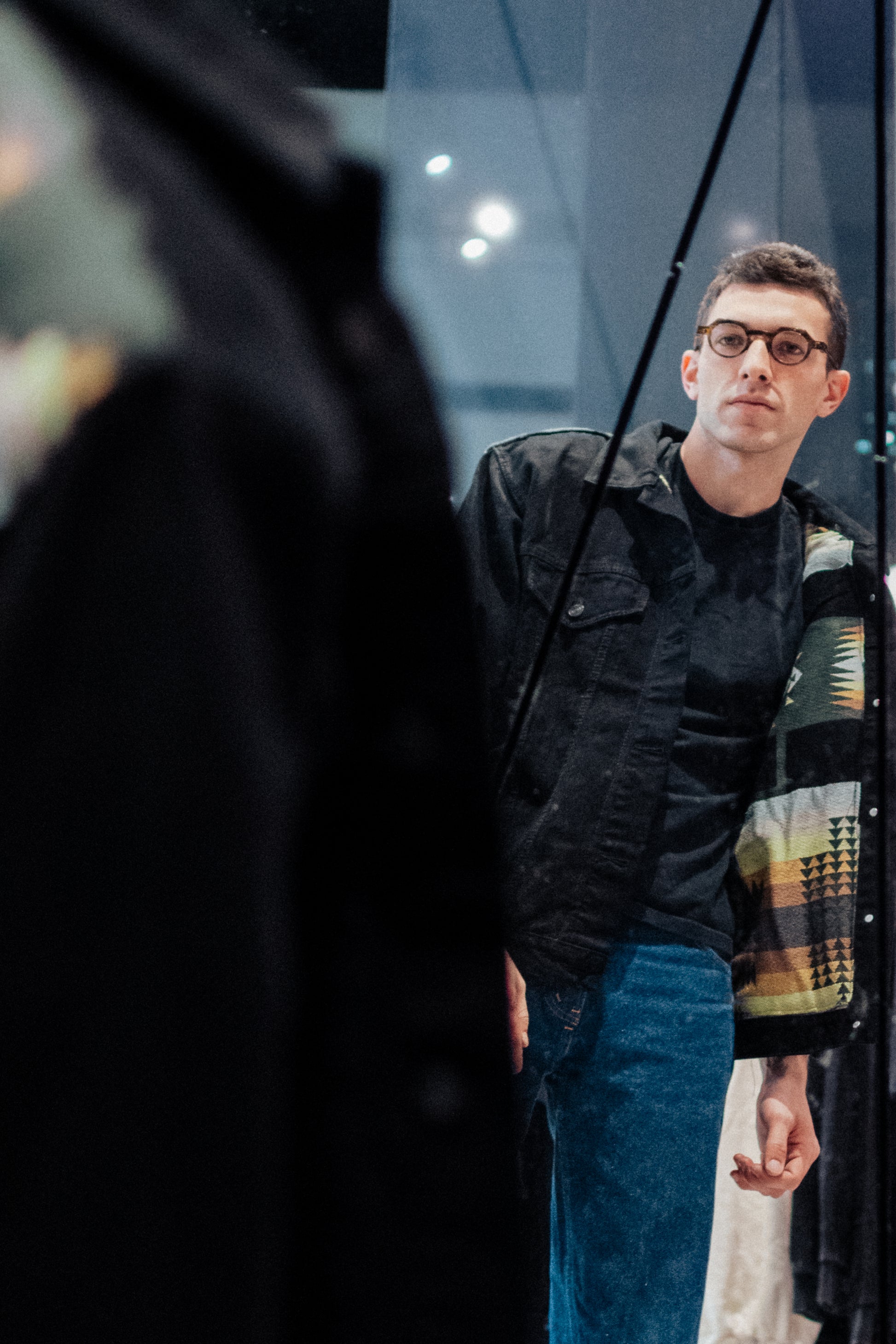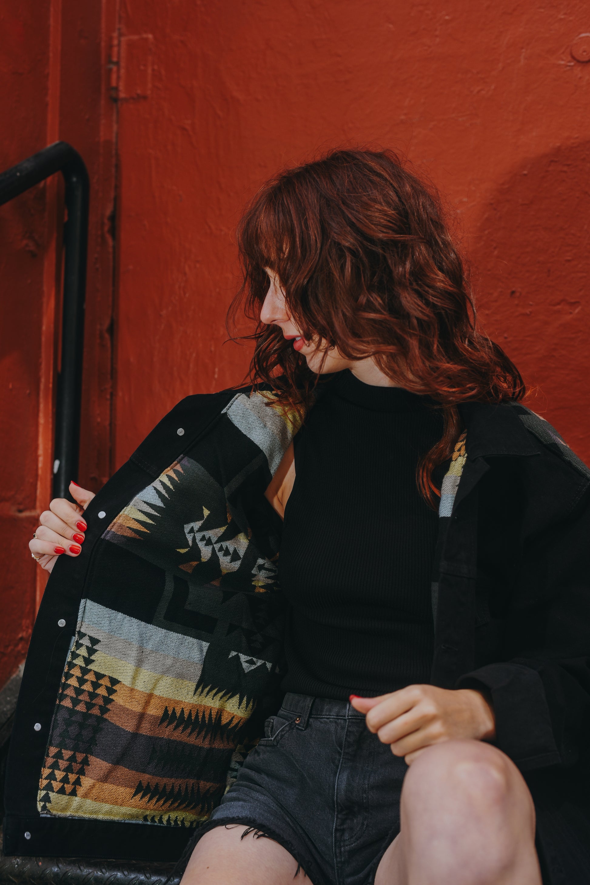 Una fusión única de denim negro intenso con la tela andina Resplandor. Si miras de cerca, dentro del profundo tono carbón del denim podrás ver el brillo del último atardecer sobre el océano. La tela andina no solo aporta un toque distintivo, sino que también brinda calidez adicional para los días fríos en los Andes.