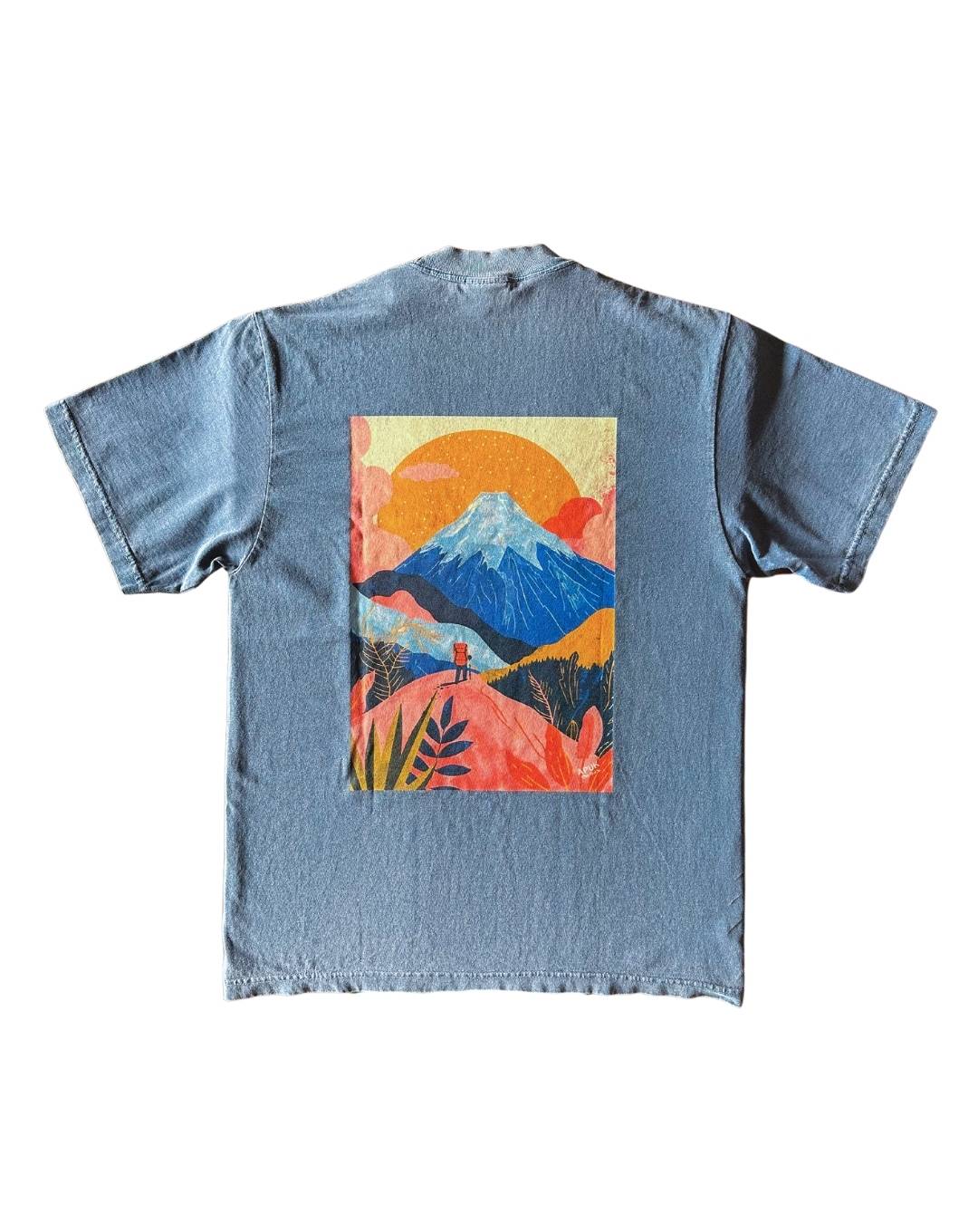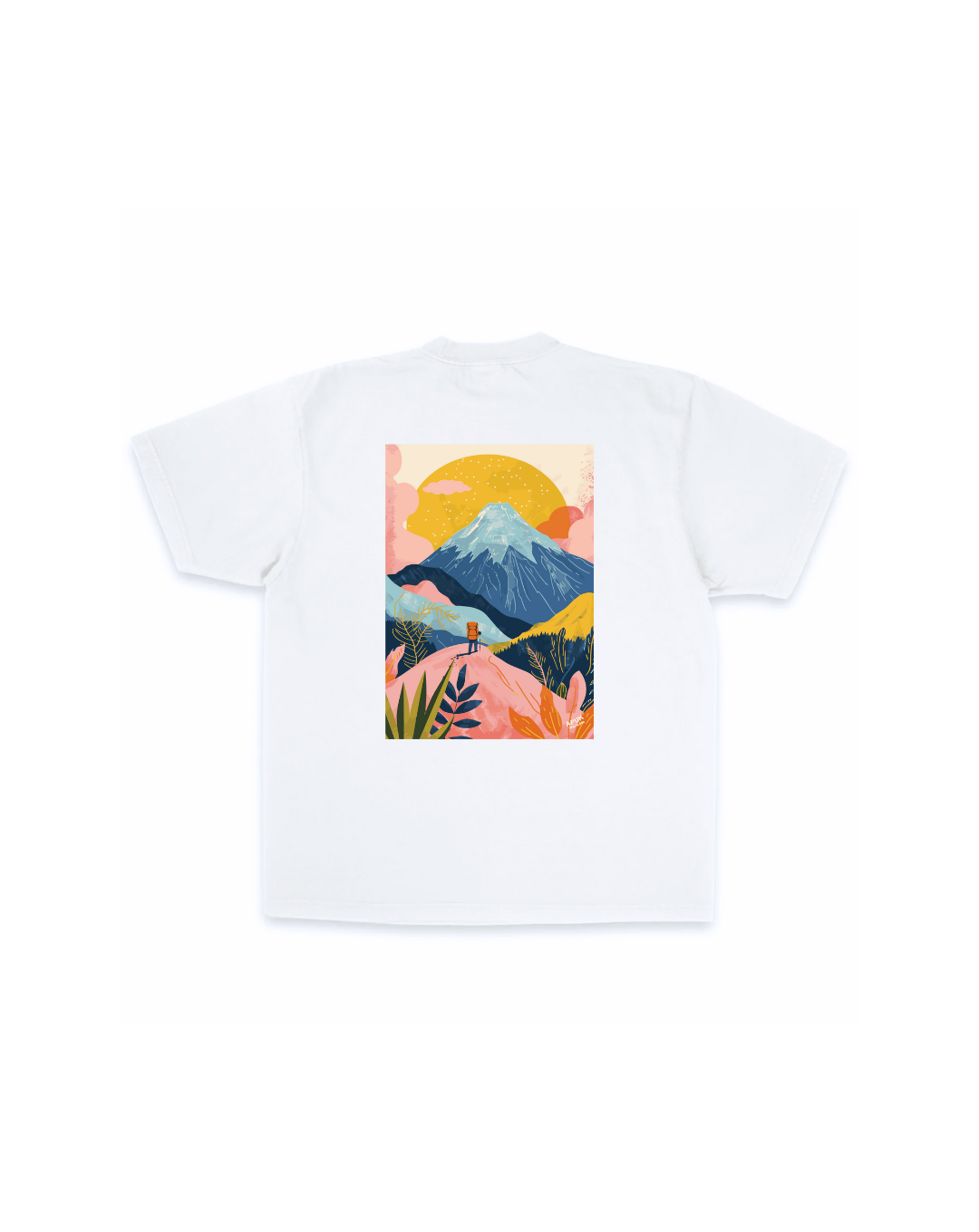 Un homenaje a los guías de montaña, quienes nos protegen y acompañan en cada aventura. Inspirado en los Andes ecuatorianos, el diseño muestra a una persona con mochila ascendiendo una montaña — símbolo de liderazgo y resiliencia. Los suaves tonos pasteles resaltan el paisaje y transmiten una sensación de paz y conexión con la naturaleza.